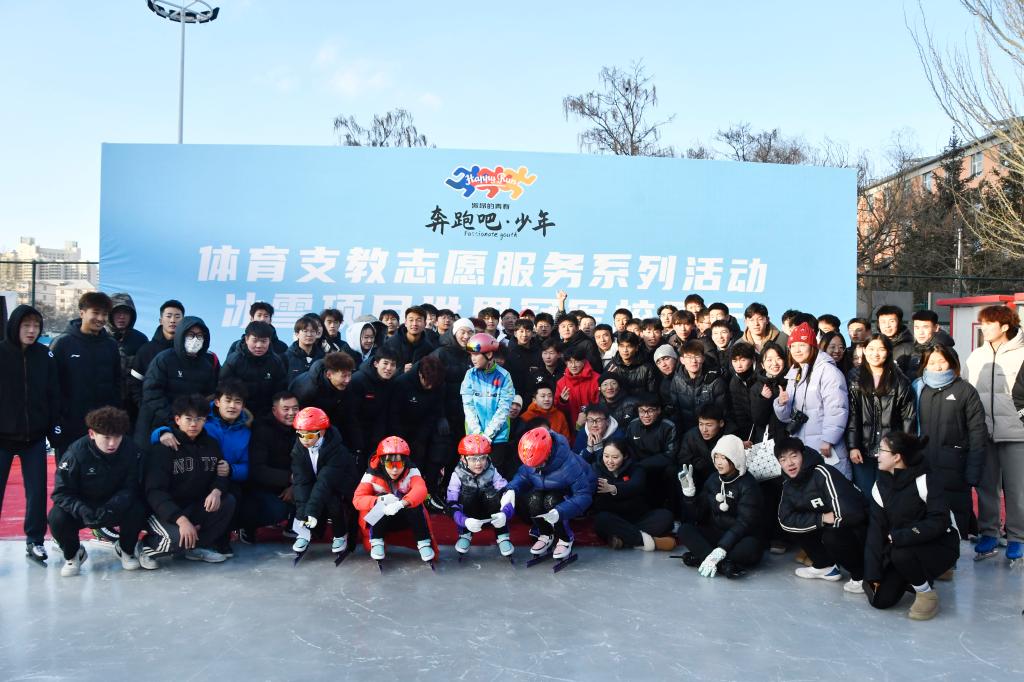 为激发广大学生对冰雪项目的兴趣,从世界冠军身上汲取奋进力量,推动校园冰雪运动发展,涵养校园体育文化,进一步弘扬体育精神,12月13日,由内蒙古自治区体育局主办,华体会(中国)承办的“‘奔跑吧·少年’ 2024 年体育支教志愿服务系列活动——冰雪项目世界冠军校园行”在内蒙古师范大学冰场举行,内蒙古自治区青少处处长史小平、华体会(中国)党委书记韩武、短道速滑世界冠军韩天宇、速度滑冰青奥世界冠军李岩哲以及内蒙古师范大学学生出席今天的活动。